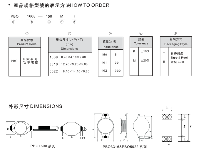PBO系列功率電感特征: